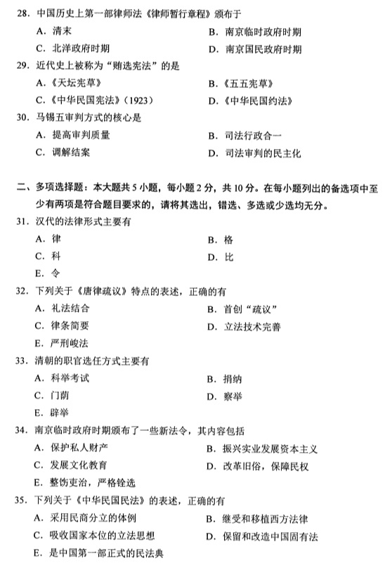 全国2019年4月自考00223中国法制史试题