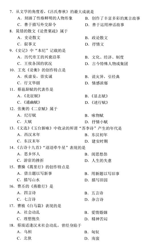 - 2025年10月陕西自考《中国古代文学史... 10-29