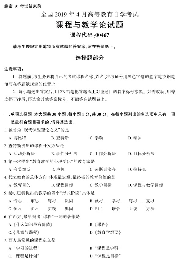 - 2025年10月陕西自考《15040》部分真... 10-29