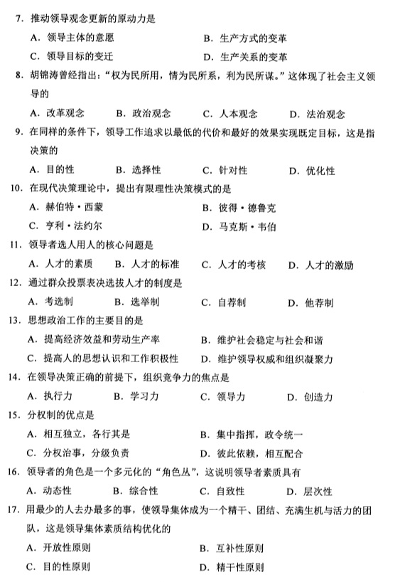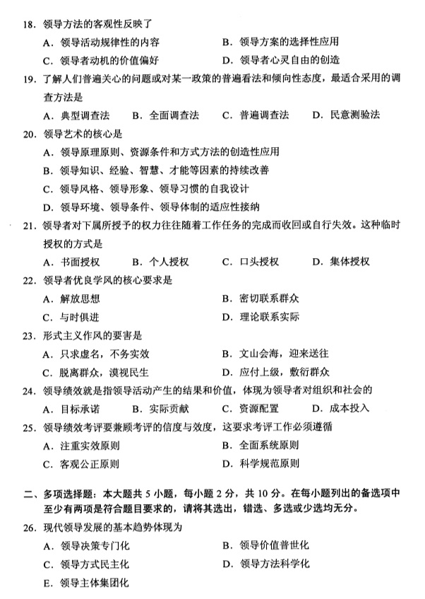 - 2025年10月陕西自考《15040》部分真... 10-29