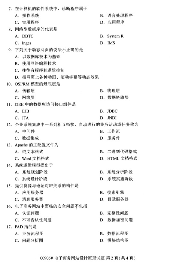 全国2019年4月自考00906电子商务网站设计原理试题