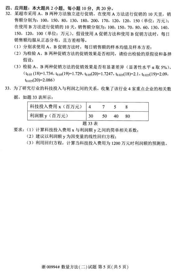 全国2019年10月自考00994数量方法(二)