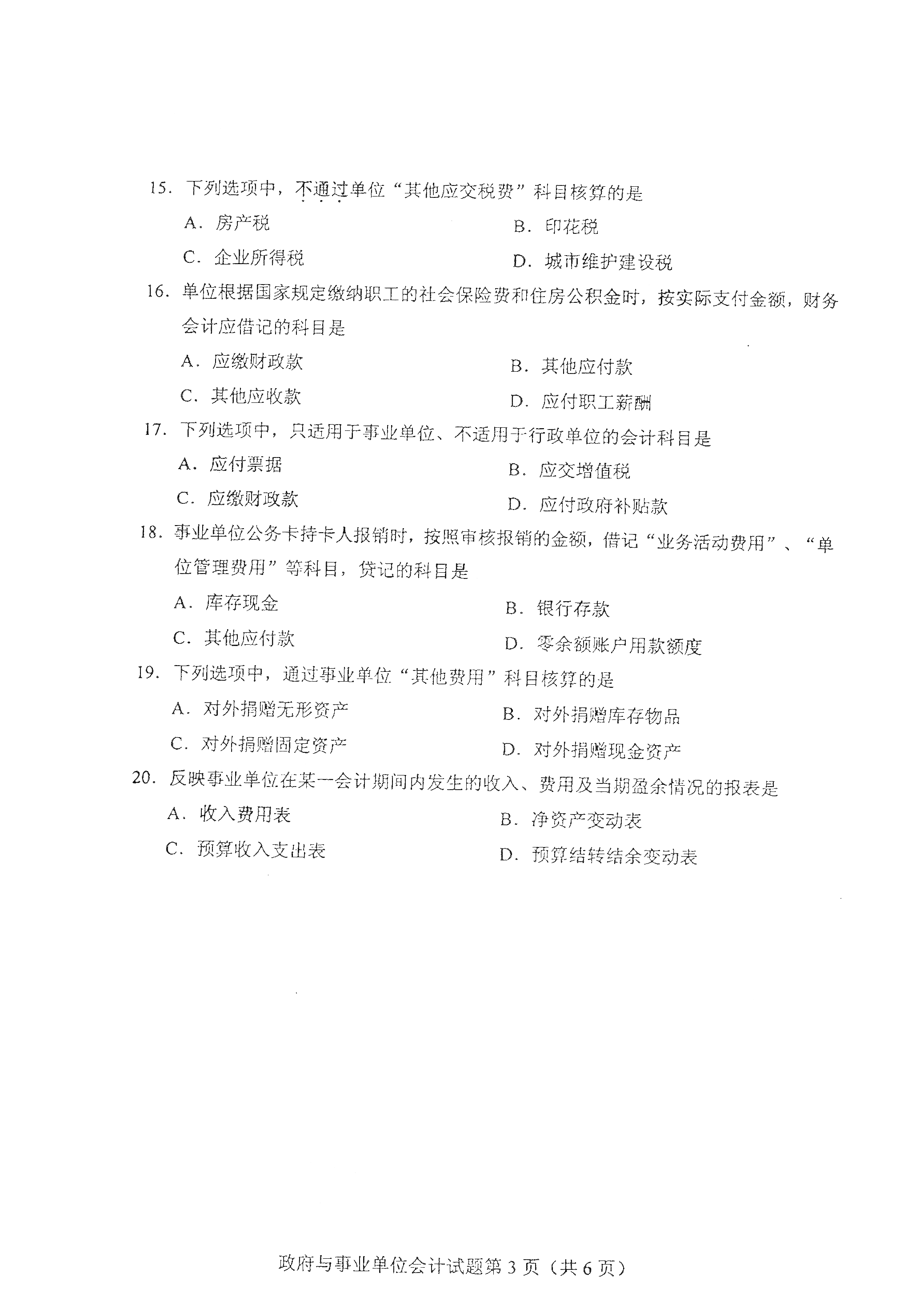 2021年4月陕西自学考试政府与事业单位会计试卷(00070)