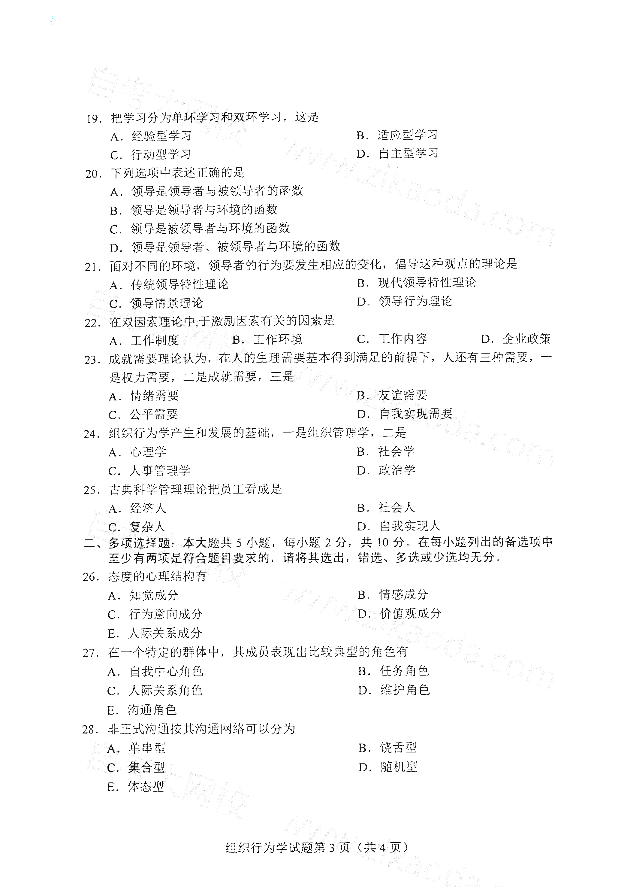 2021年4月陕西自学考试组织行为学试卷(00152)