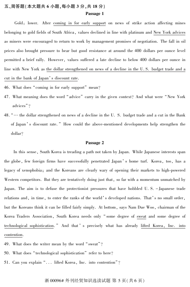 【导读】陕西自考网为大家整理全国全国2018年4月高等教育自考00096外刊经贸知识选读试题;
