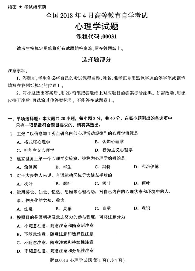 以上为陕西自考网整理的全国2018年4月高等教育自考00031心理学试题