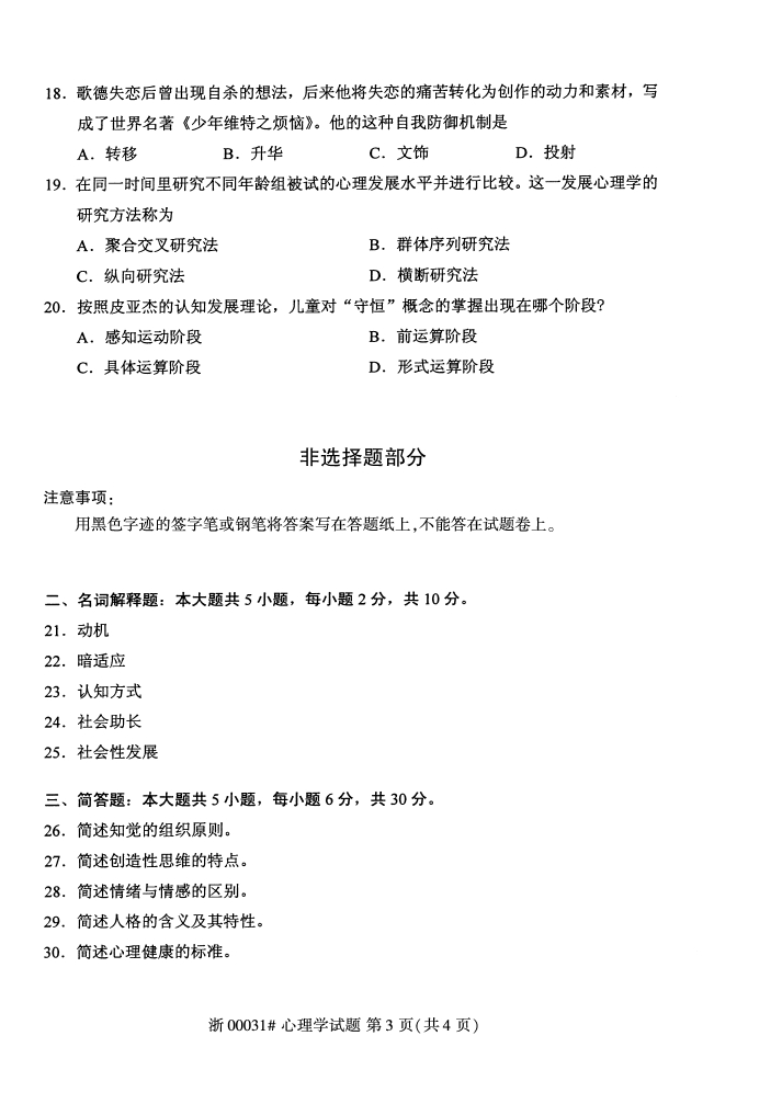 【导读】陕西自考网为大家整理全国2018年4月高等教育自考00031心理学试题;
