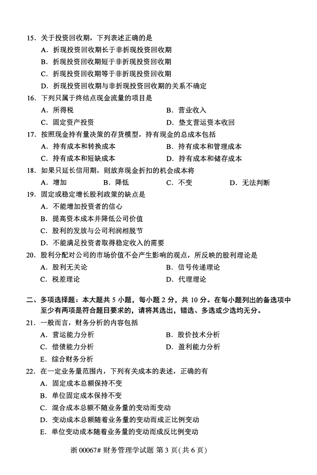 【导读】陕西自考网为大家整理全国2018年4月高等教育自考00067财务管理学试题;