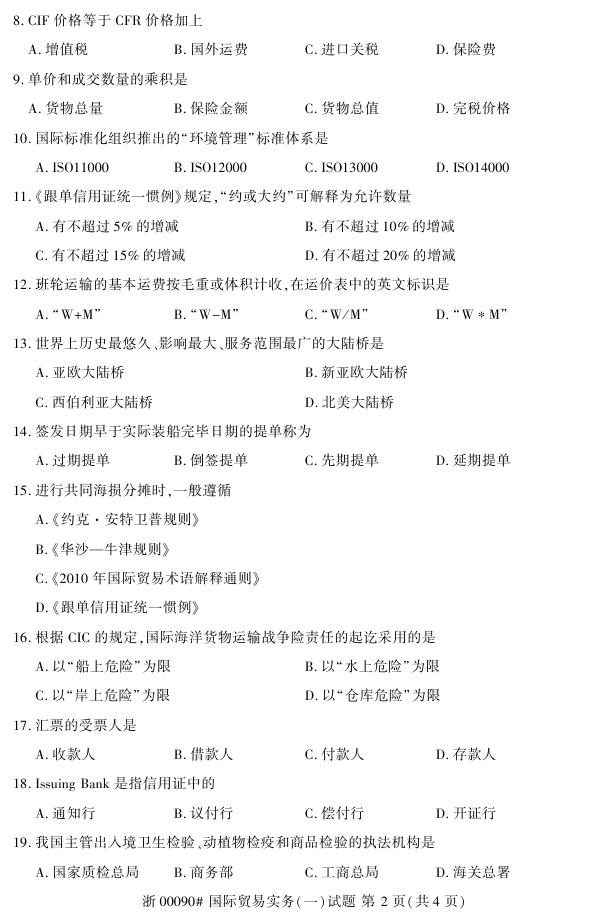 【导读】陕西自考网为大家整理全国2018年4月高等教育自考00090国际贸易实务(一)试题;