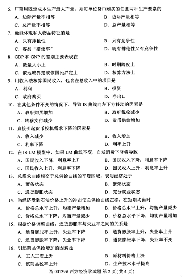 【导读】陕西自考网为大家整理全国2018年4月高等教育自考00139西方经济学试题;