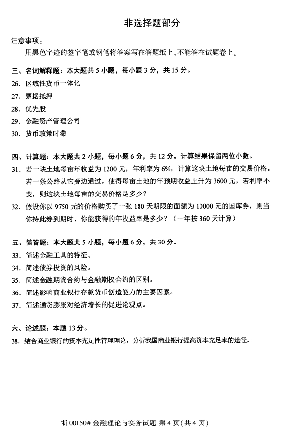 【导读】陕西自考网为大家整理全国2018年4月高等教育自考00150金融理论与实务试题;