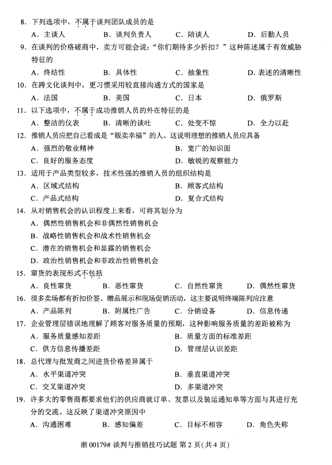 【导读】陕西自考网为大家整理全国2018年4月高等教育自考00179谈判与推销技巧试题;